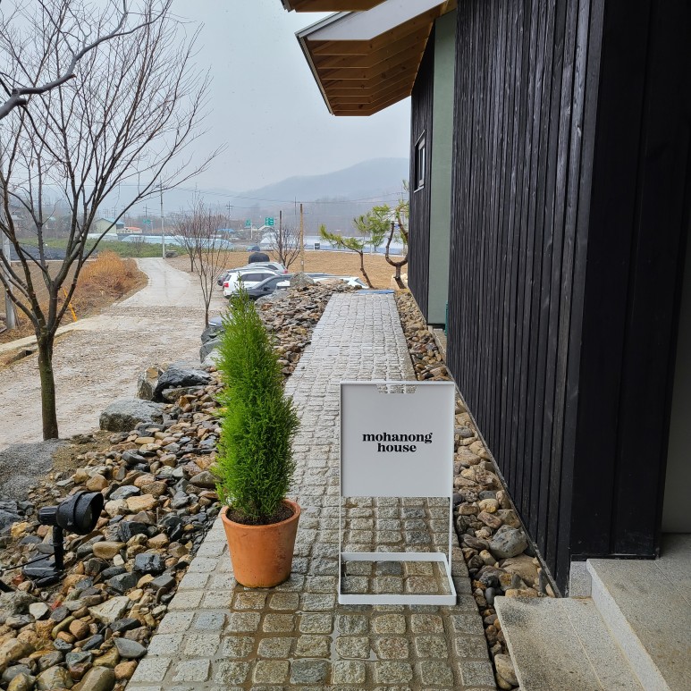 들어가는 입구에 이렇게 예쁜 입간판과 율마가! (율마 맞나요..?ㅎㅎ)