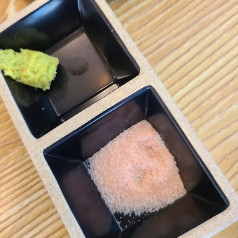 메뉴판에 와사비, 핑크소금 필요한 분들 요청하면 된다고 하길래 조금씩 달라고 했는데 주셨어요!