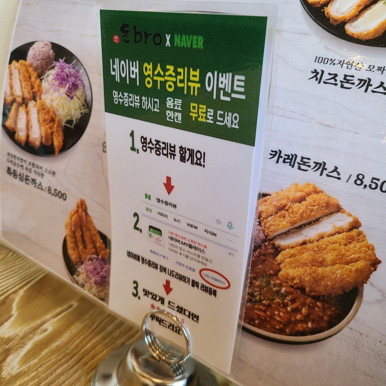 메뉴판과 네이버 영수증리뷰 이벤트에요!