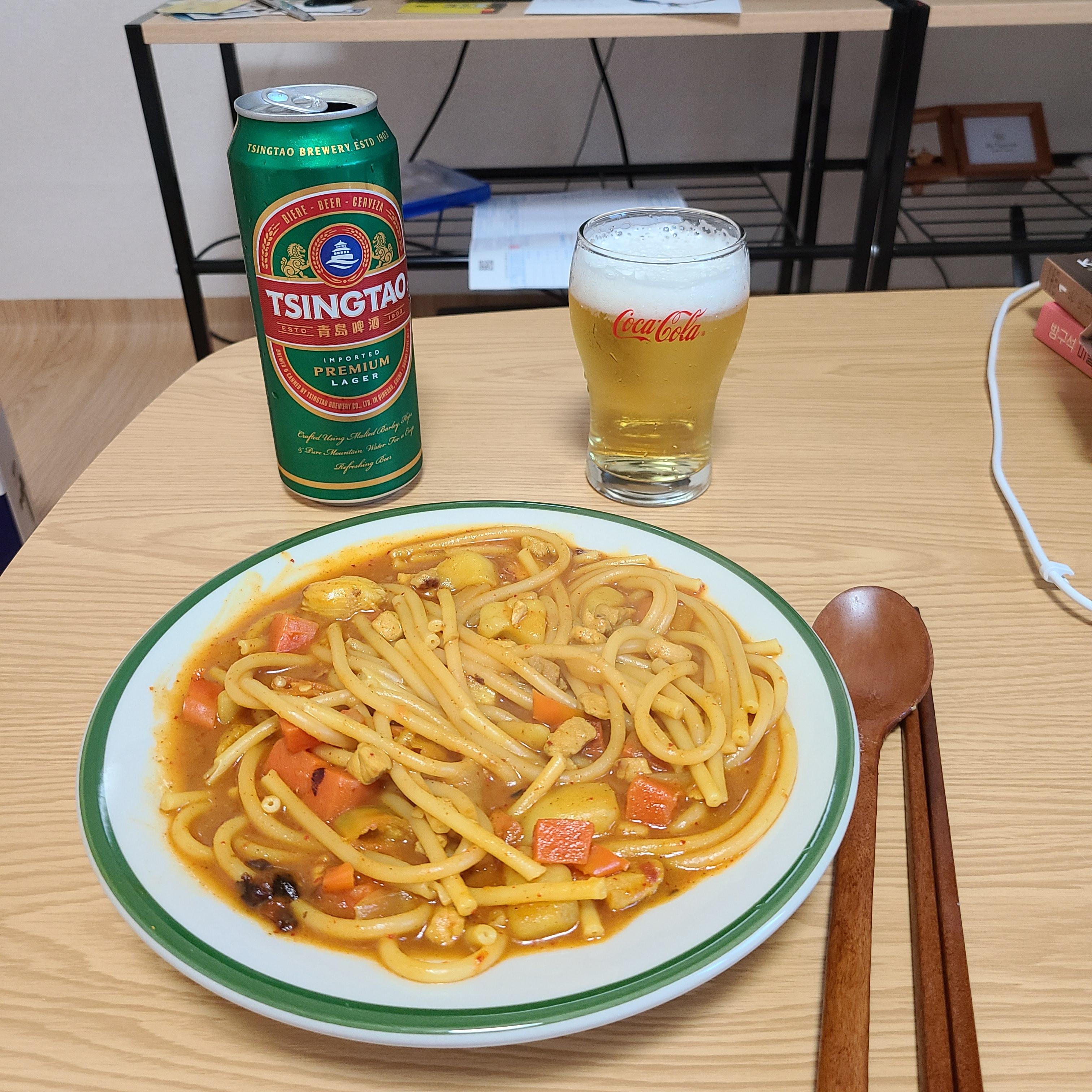 남은 카레에 물 더 붓고 파스타면 반 잘라서 넣고 면이 익을때까지 물 계속 더 부으면서 끓였더니